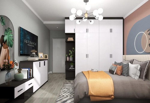 主臥采用藍灰色和粉色,搭配活力橙的床品撞色設(shè)計,讓整個空間有了質(zhì)的飛躍,米白色的床頭,高級灰的被子,優(yōu)雅的掛畫,無異于讓整個空間時尚與復(fù)古并存。