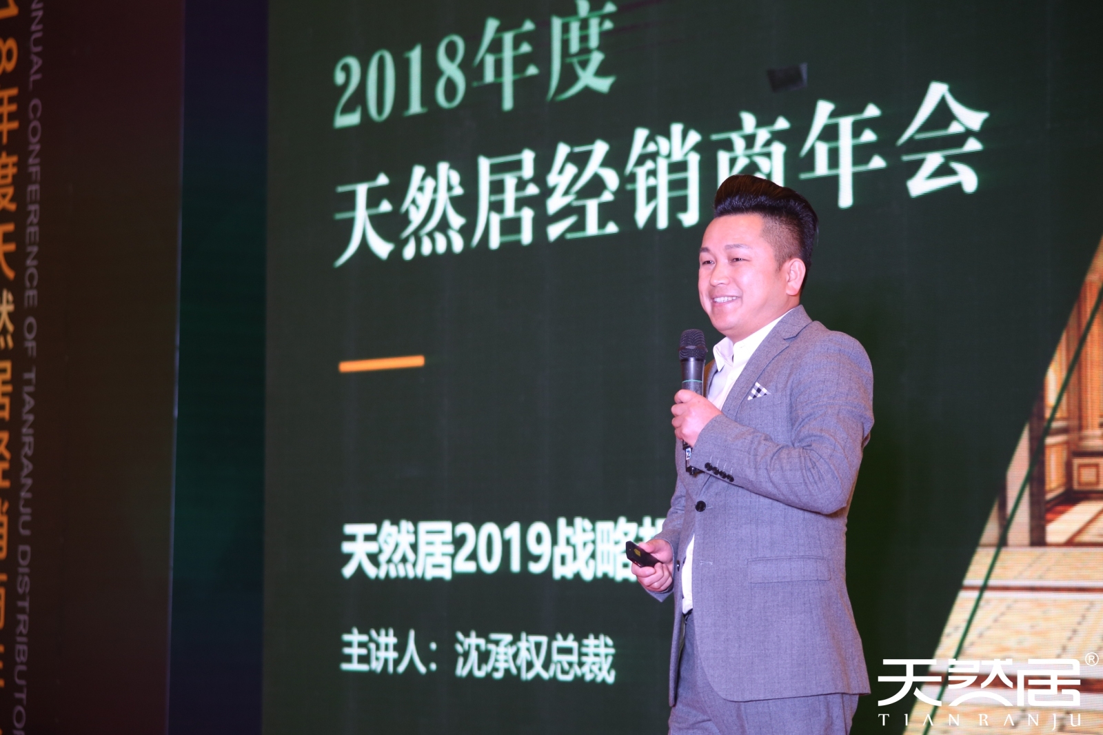 2019年1月5日至6日,“裂變◎啟航”天然居集團(tuán)2018年度經(jīng)銷商年會(huì)在武漢·荷田大酒店盛大召開。會(huì)上,天然居總裁沈承權(quán)先生正式發(fā)布天然居2019戰(zhàn)略——高端無醛全屋整裝戰(zhàn)略。從市場、經(jīng)銷商、終端等方面出發(fā),精抓品質(zhì)+服務(wù)+傳播力,覆蓋硅藻泥、硅藻板、硅藻線條、硅藻地板、全鋁家具品類,全線打通線上、線下,為終端打造一店頂多店的超級盈利模式。