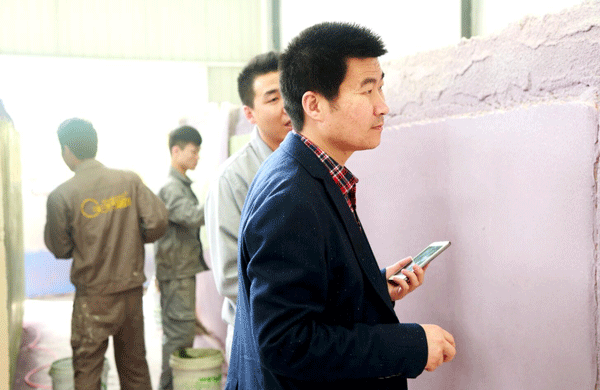 天然居施工總監向劉總詳細介紹新品工藝